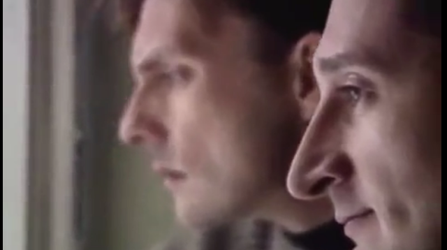 Ларин и Казанцев наблюдают из окна, как во дворе бандиты встречают своего, отпущенного на свободу.